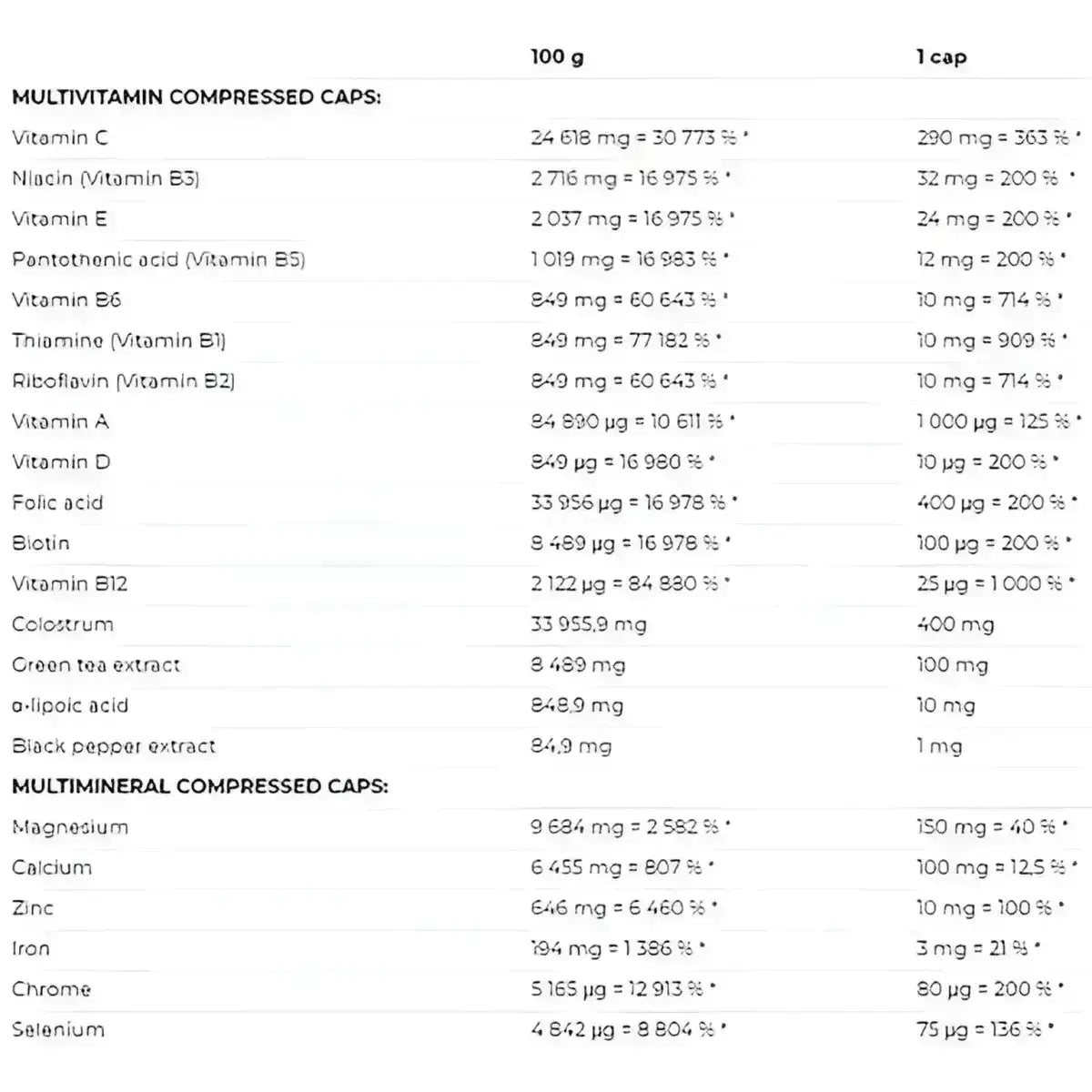 Vitamine oder Mineralien? Keine Kompromisse nötig: Multicomplex bietet beides in einem. Eine ausgewogene Mischung aus Vitaminen, Mineralien und aktiven Extrakten in Form von Kapseln, die die Immunität stärken, die körperliche und geistige Leistungsfähigkeit anregen und den Körper harmonisieren. Die praktische 30-Tage-Packung enthält zwei Arten von Kapseln: MULTIMINERAL vor dem Schlafengehen und MULTIVITAMIN nach dem Aufwachen. Dieser einfache Zeitplan stellt sicher, dass Sie alles, was Sie brauchen, in leicht löslichen Gelatinekapseln erhalten.