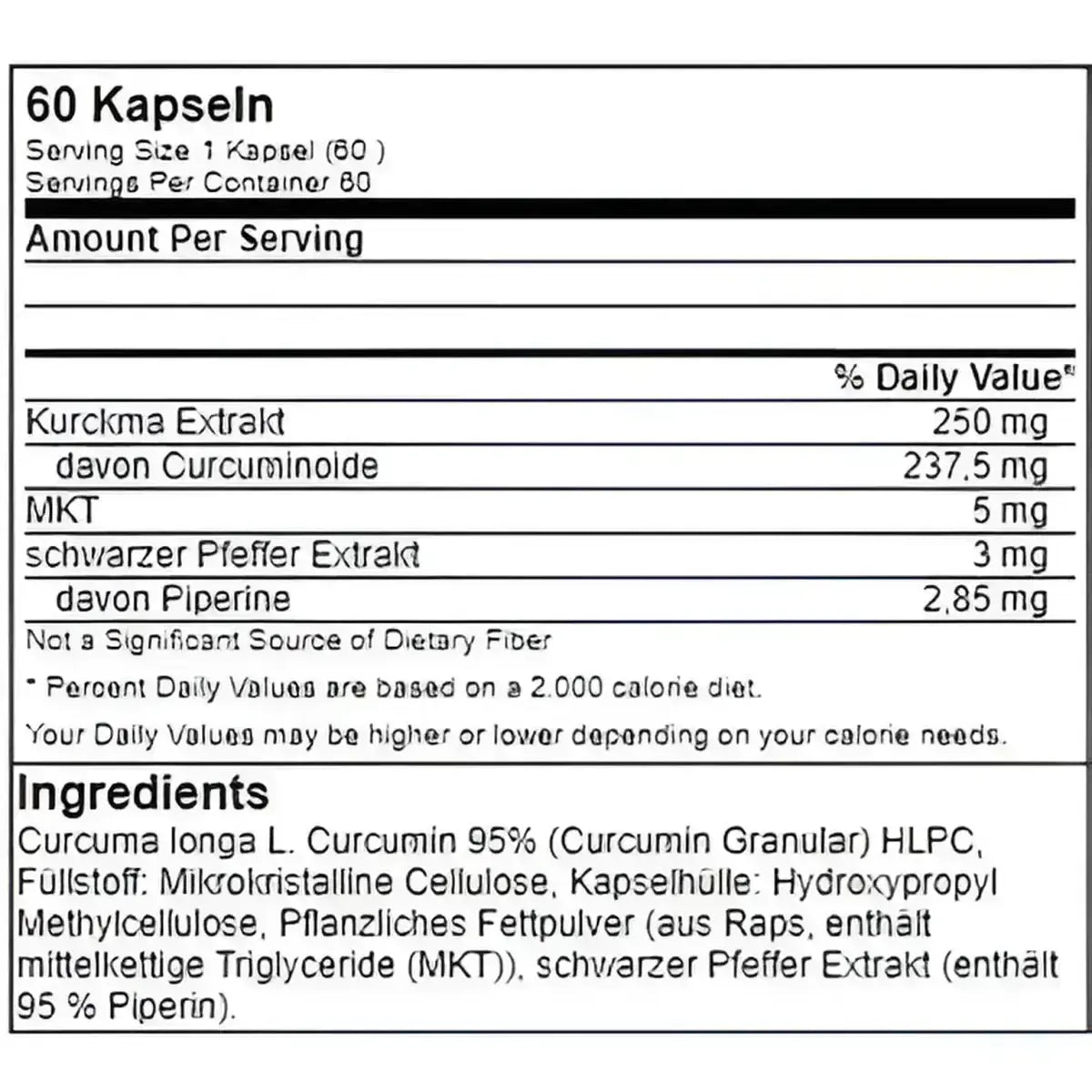 • 500mg Kurkumin Extrakt 50:1 (Tagesportion) entsprechen 25000mg reinem Kurkuma Pulver