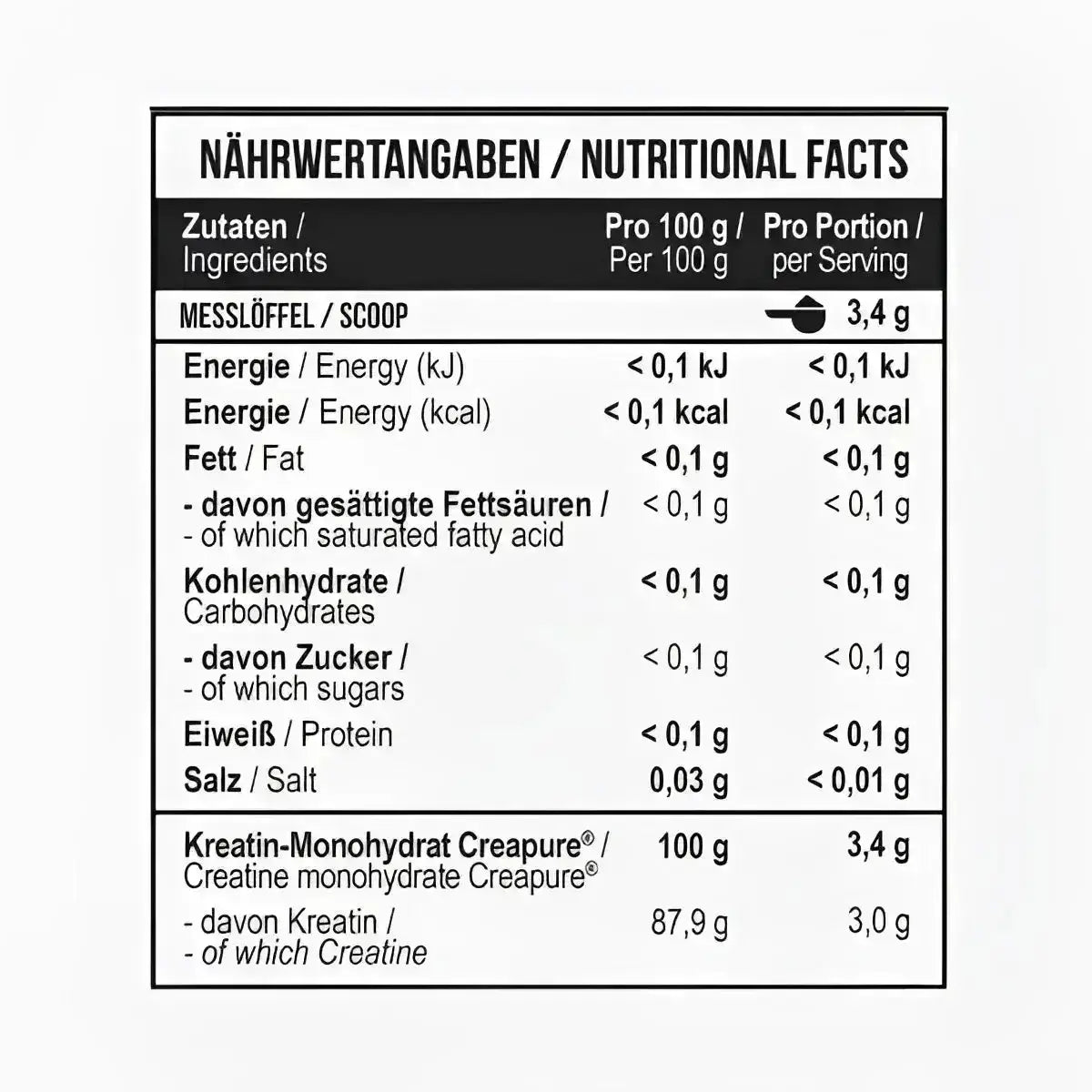 • 100 % reines Creatin-Monohydrat (mikronisiert)