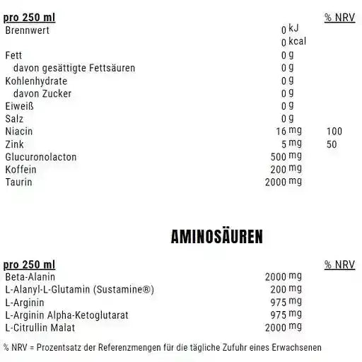 • jeweils 2.000 mg L-Citrullin Malat und Beta-Alanin pro Dose