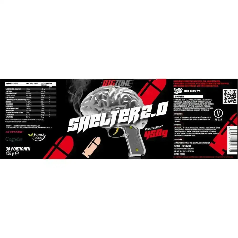 Als Pre-Workout Booster sollte der BigZone Shelter ca. 30 Minuten vor dem Training eingenommen werden. Eine Portion entspricht 15 g Pulver, beziehungsweise 1 gestrichener Messlöffel. in 500 ml Wasser.