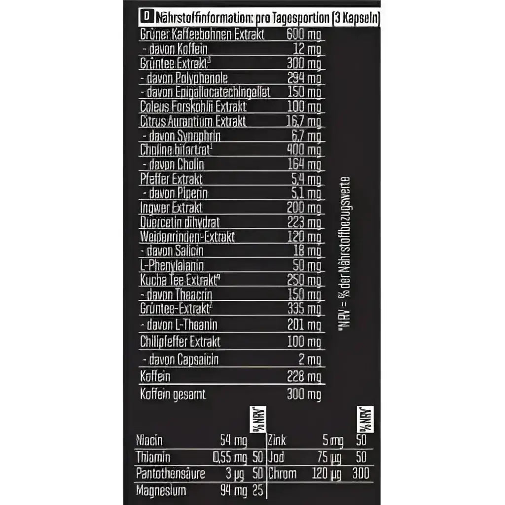 Härter, stärker besser! Für noch mehr Fokus werden dir 300 mg Koffein (pro Tagesportion) bereitgestellt. Mit dem zusätzlich in den Kapseln enthaltenen Vitamin B3 (Niacin*) dem grünen Kaffeebohnen Extrakt kannst du deine Workouts länger durchziehen. Länger am Eisen und höhere Intervalle für ein noch intensiveres Trainingsvolumen. Klingt einfach? Ist es auch!