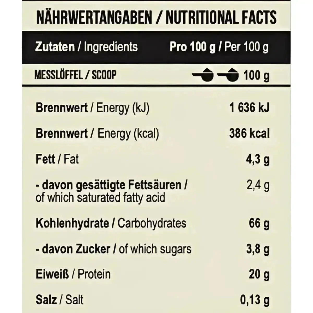 • Optimales Verhältnis von Proteinen und Kohlenhydraten: Die ausgewogene Kombination von Proteinen und Kohlenhydraten fördert eine effektive Muskelregeneration und unterstützt das Muskelwachstum nach intensivem Training.