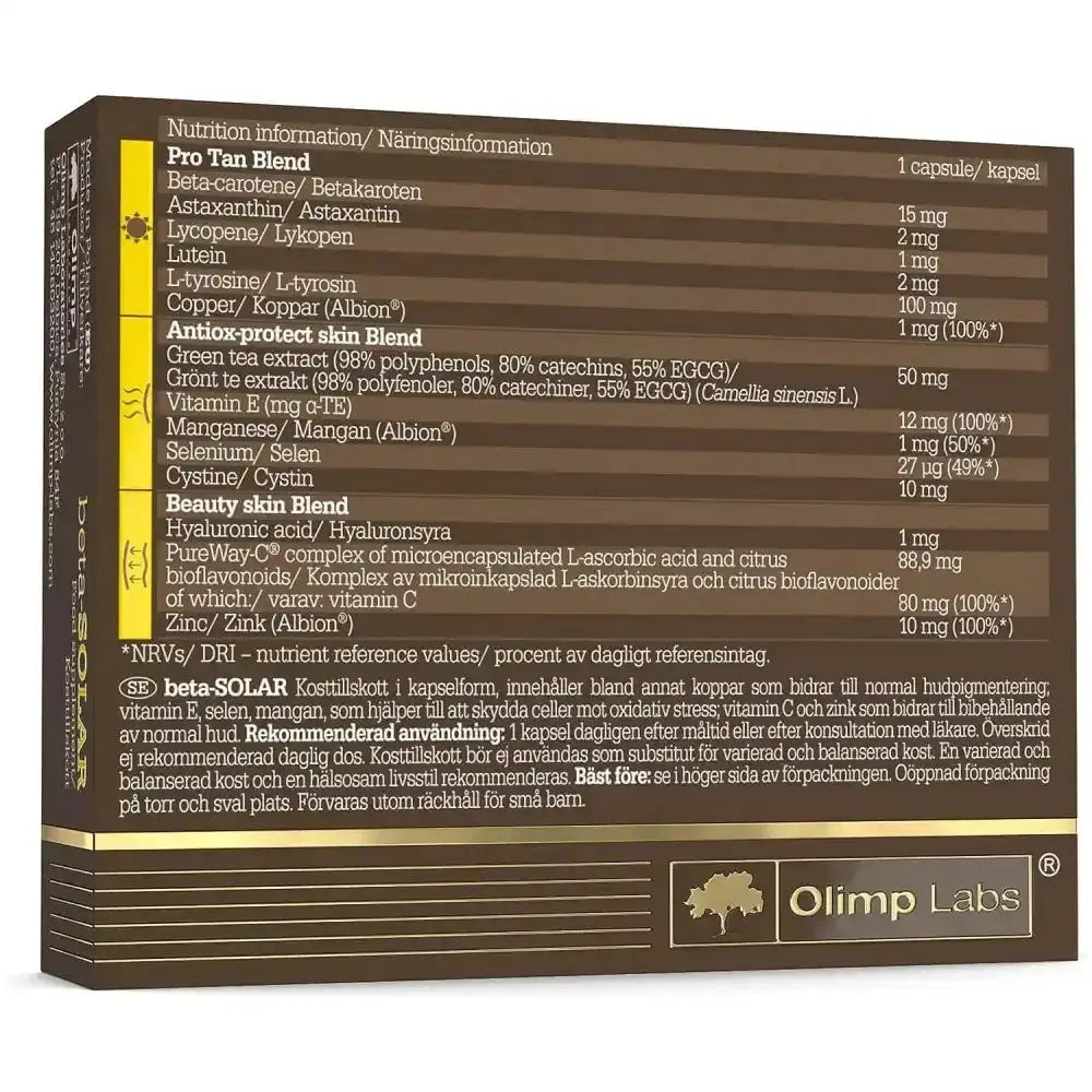 Beta SOLAR ist eine Wirkstoffmischung die der Haut bei regelmässiger Einnahme, eine natürliche Bräune verleiht. Weiter wirkt es antioxitativ und hilft der Haut bei der Zellneubildung. Vorzüglich wird Beta SOLAR begleitend zu regelmässigem Solriumbesuch und Sonnenbädern eingenommen!