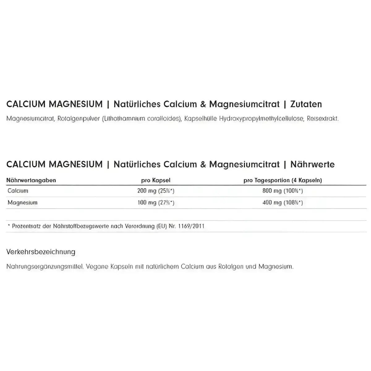 Magnesiumcitrat, Rotalgenpulver (Lithothamnium coralloides), Kapselhülle Hydroxypropylmethylcellulose, Reisextrakt.